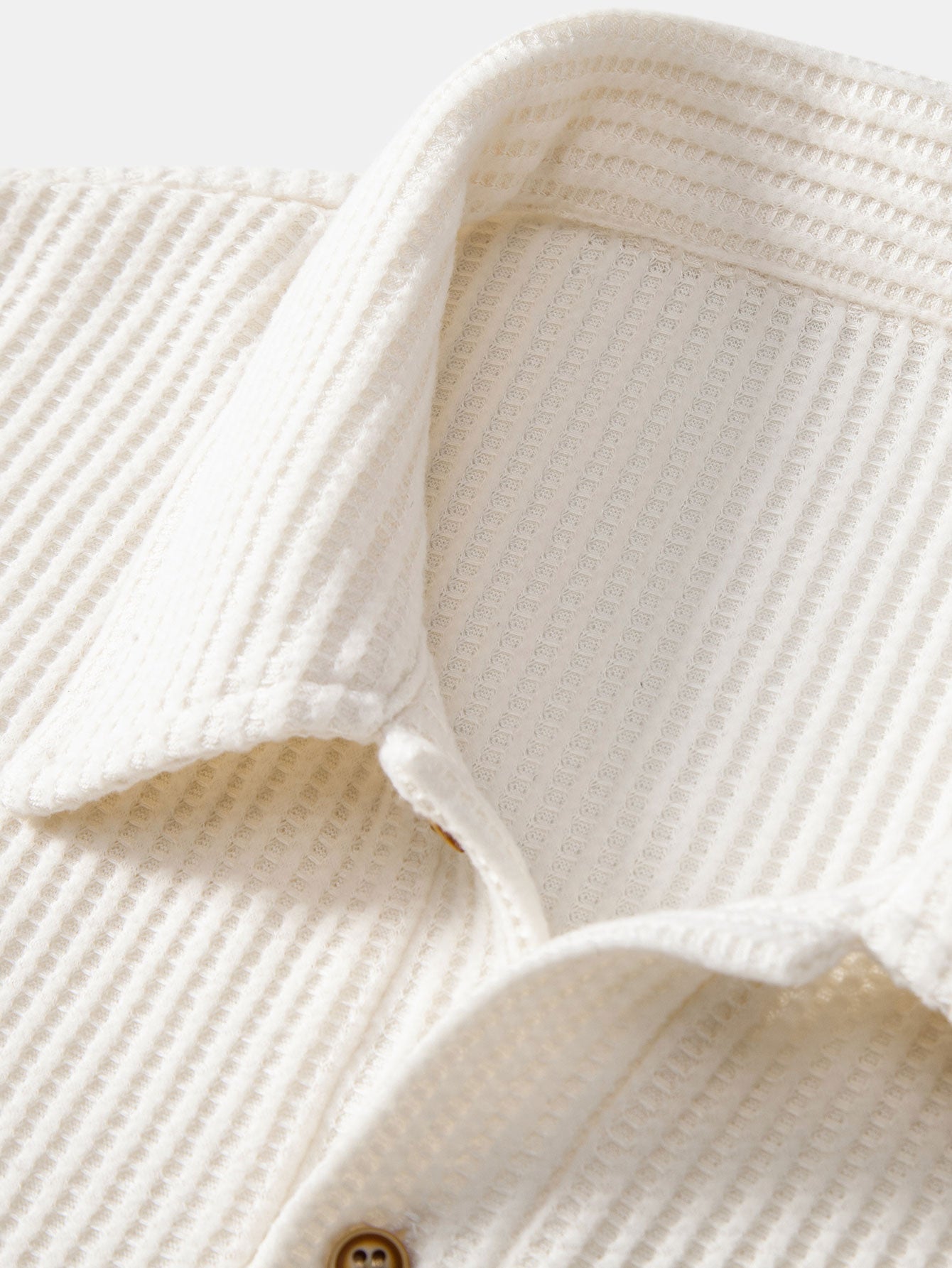 This short-sleeved polo shirt is simple yet stylish. The exquisite small lapel design cleverly outlines the neck line, showing neatness and competence. The unique texture gives the fabric a three-dimensional sense, making it breathable and comfortable. It easily creates a casual atmosphere and is a versatile item that enhances your daily style.