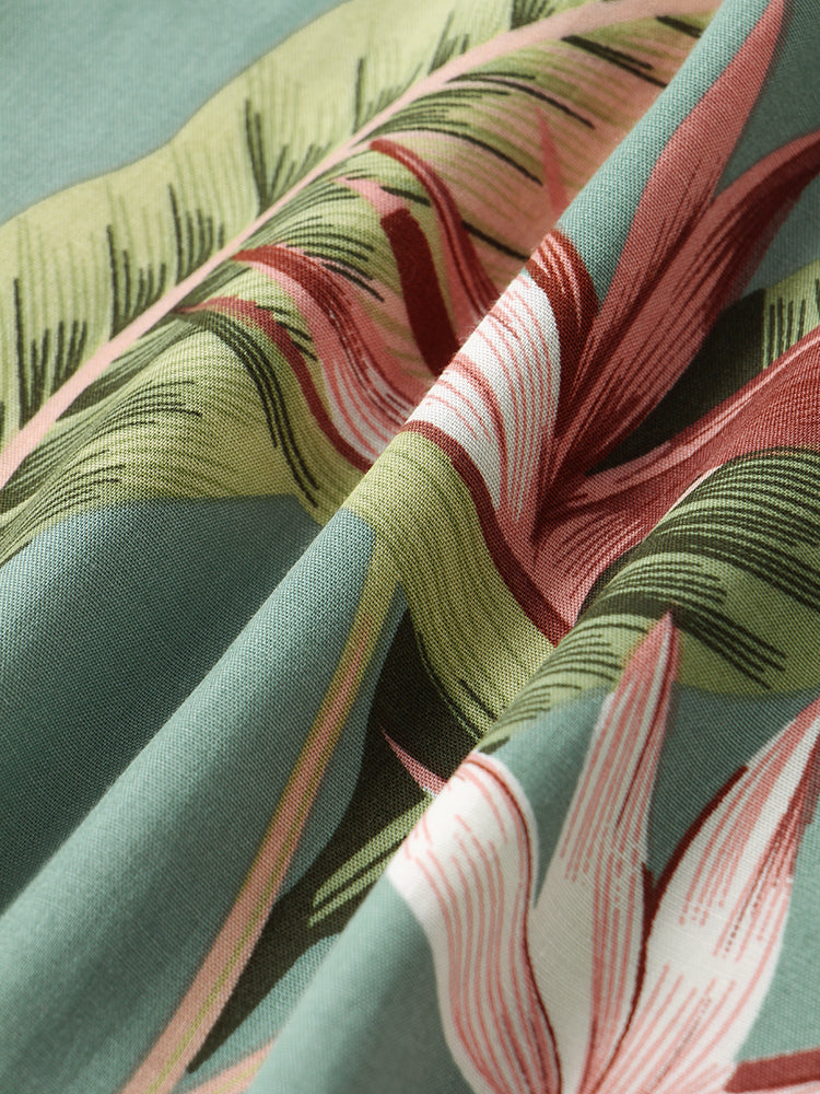 Oil Print Leaf Short Sleeve Shirts